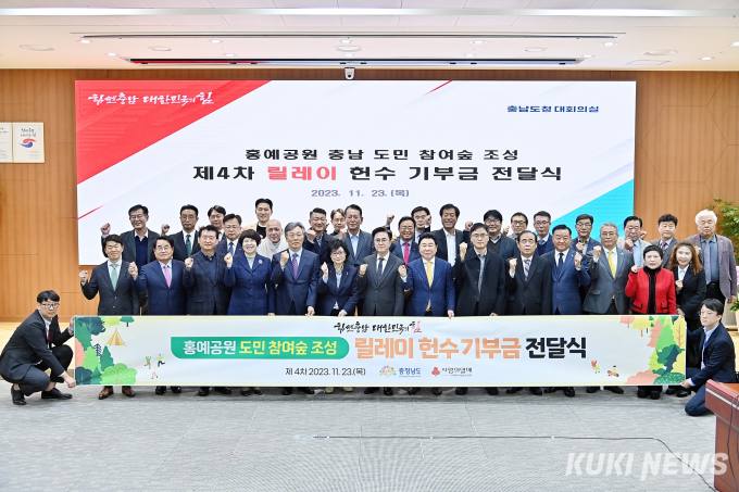 도는 23일 도청 대회의실에서 김태흠 지사, 성우종 충남사회복지공동모금회장 등이 참석한 가운데, 도민 참여 숲 조성을 위해 헌수금을 기부한 기업·단체·개인과 전달식을 개최했다.