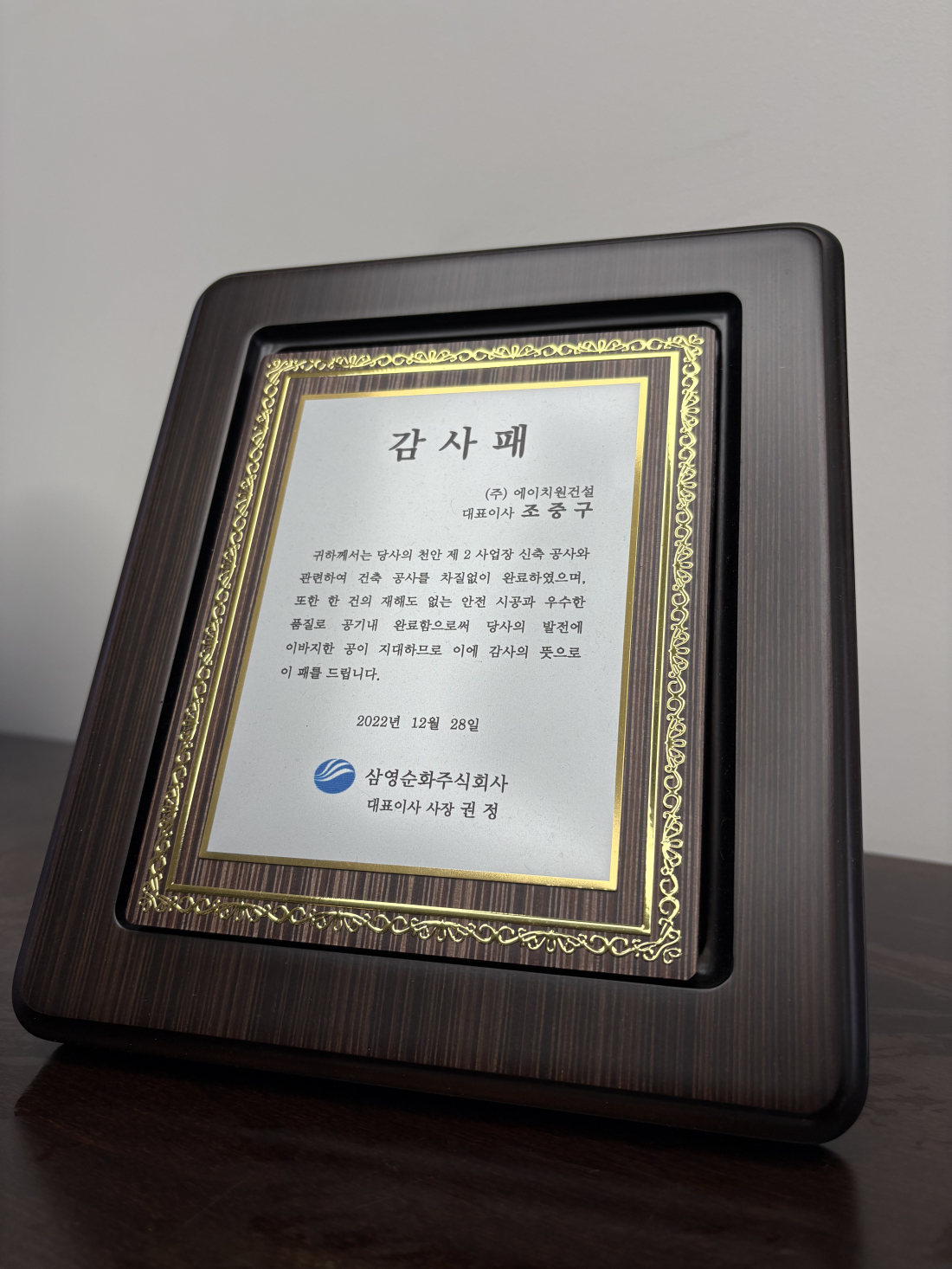 삼영순화(주) 감사패